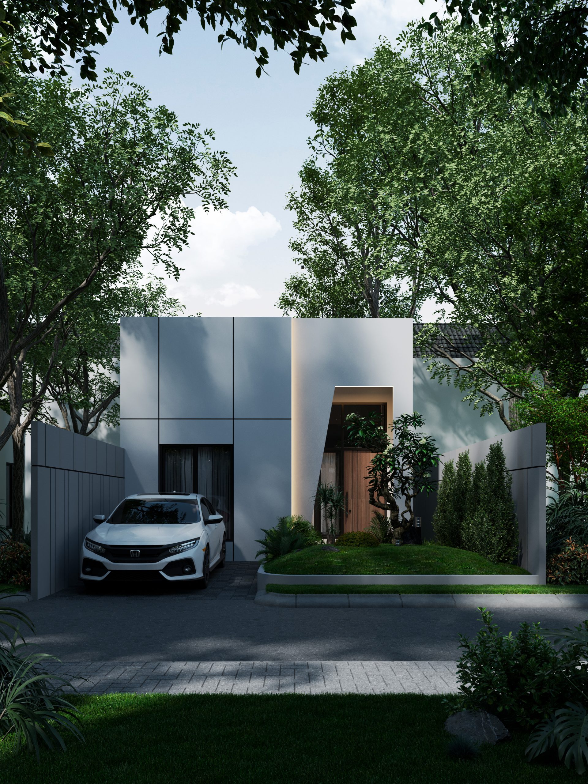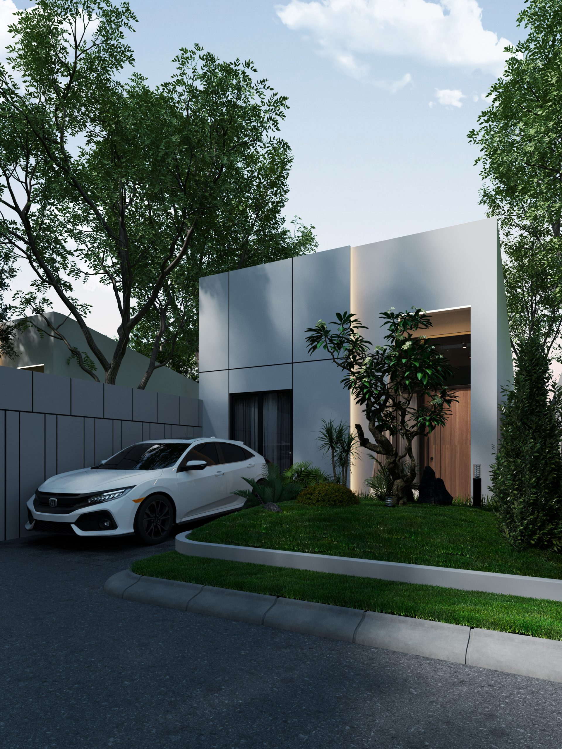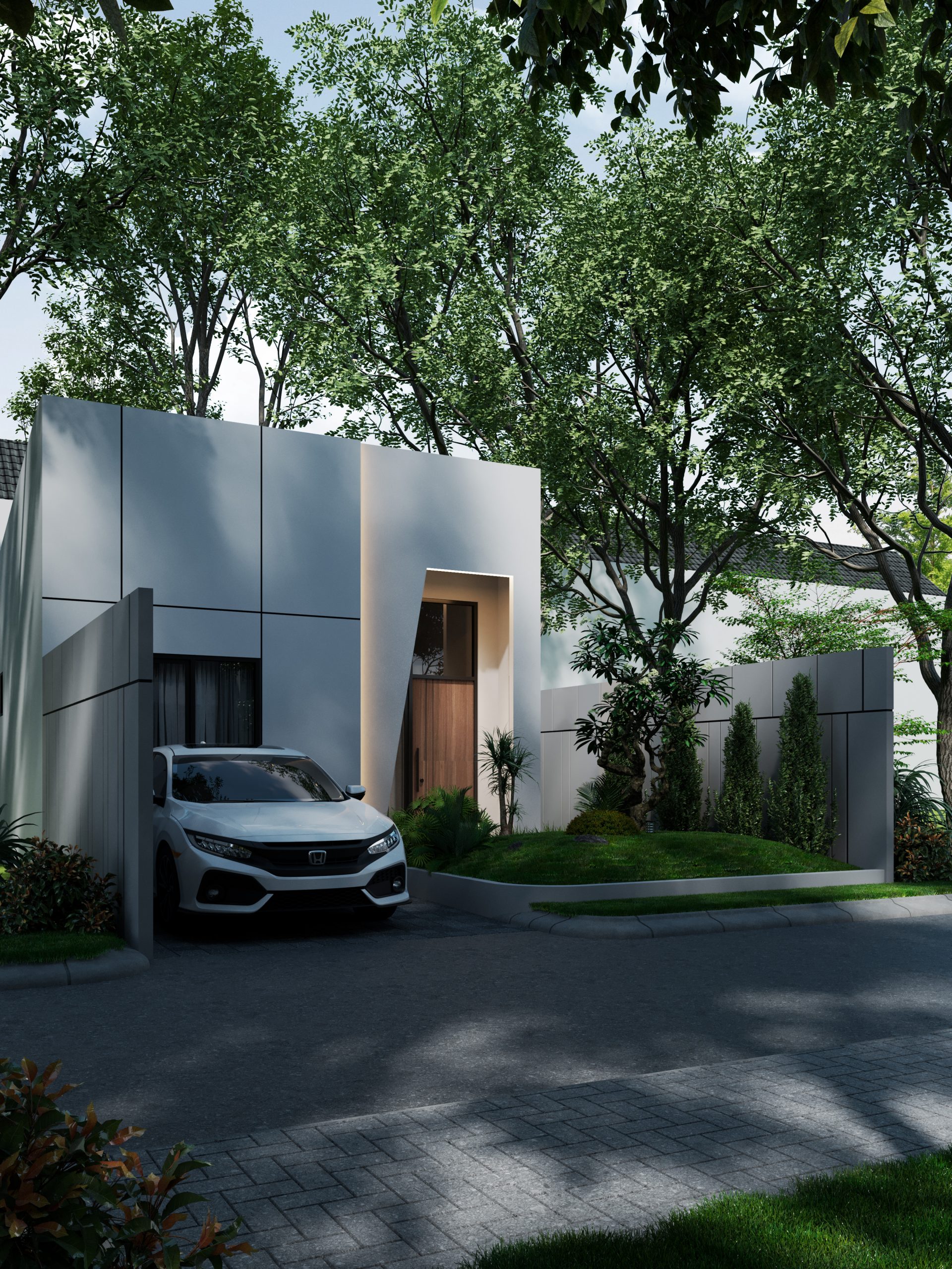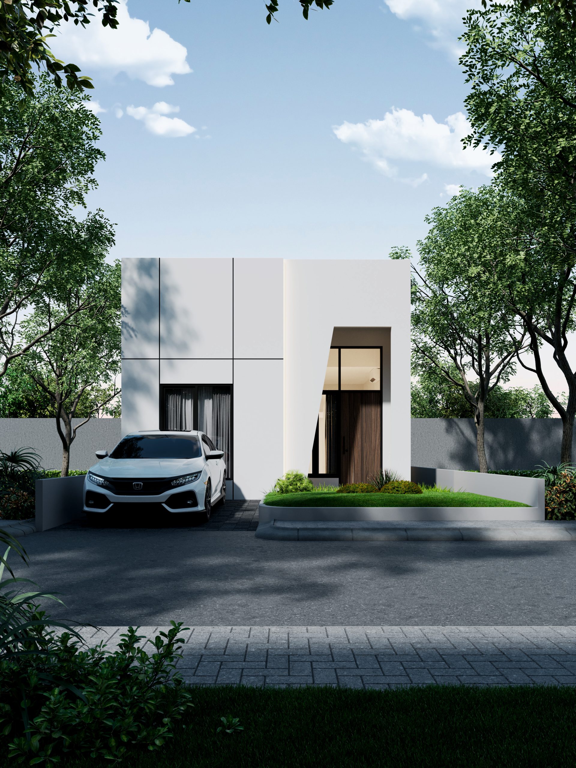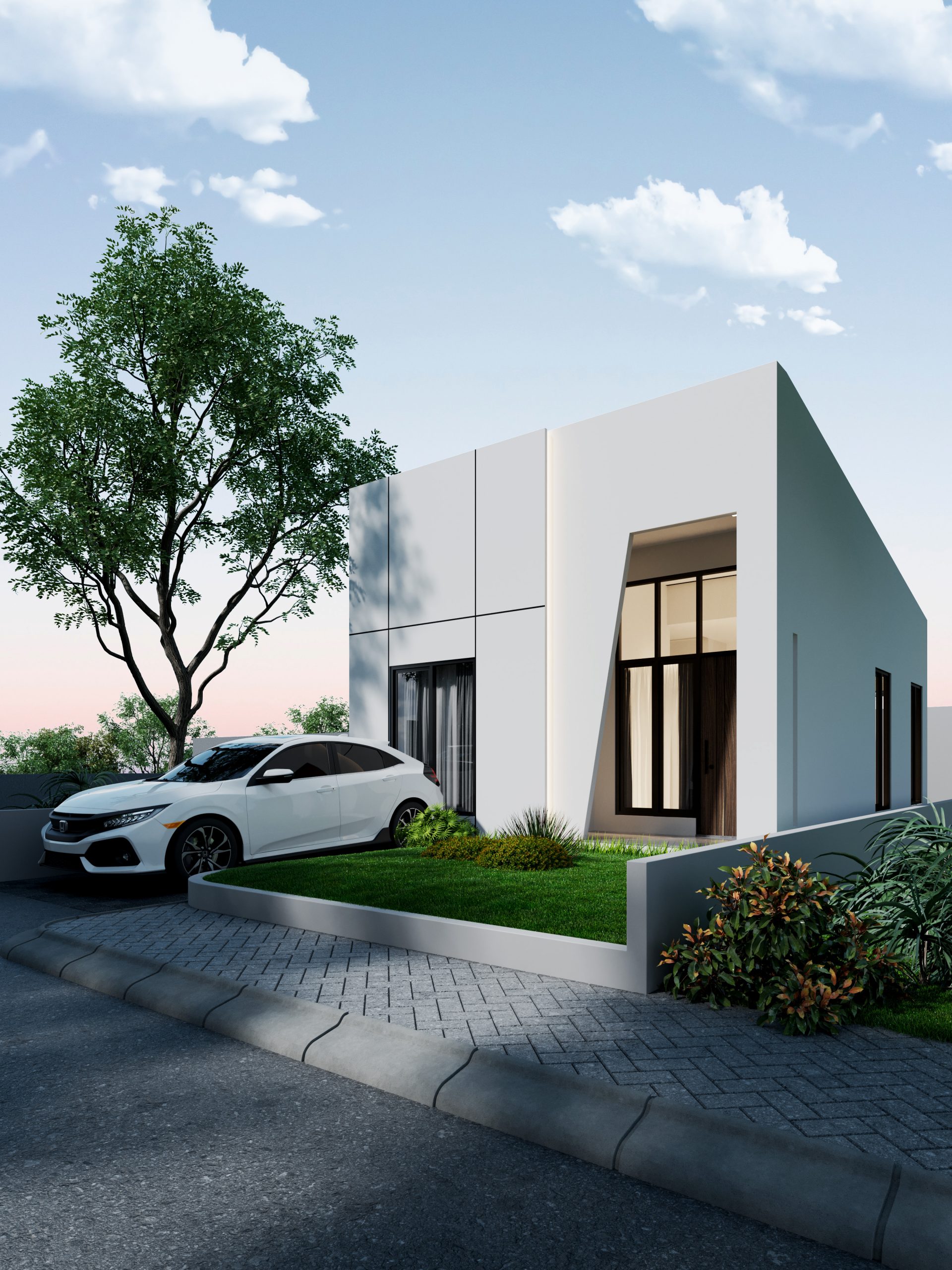 All interior details are designed to have a more luxurious and classy appearance, such as the use of granite and wood texture floors and more stylish door handles. In the  Bathroom, we provide water heater pipes, as well as two-tone tiles and a rain shower to make your bathroom appear more luxurious. The use of neutral white tones gives the house a clean, modern, and elegant appearance.